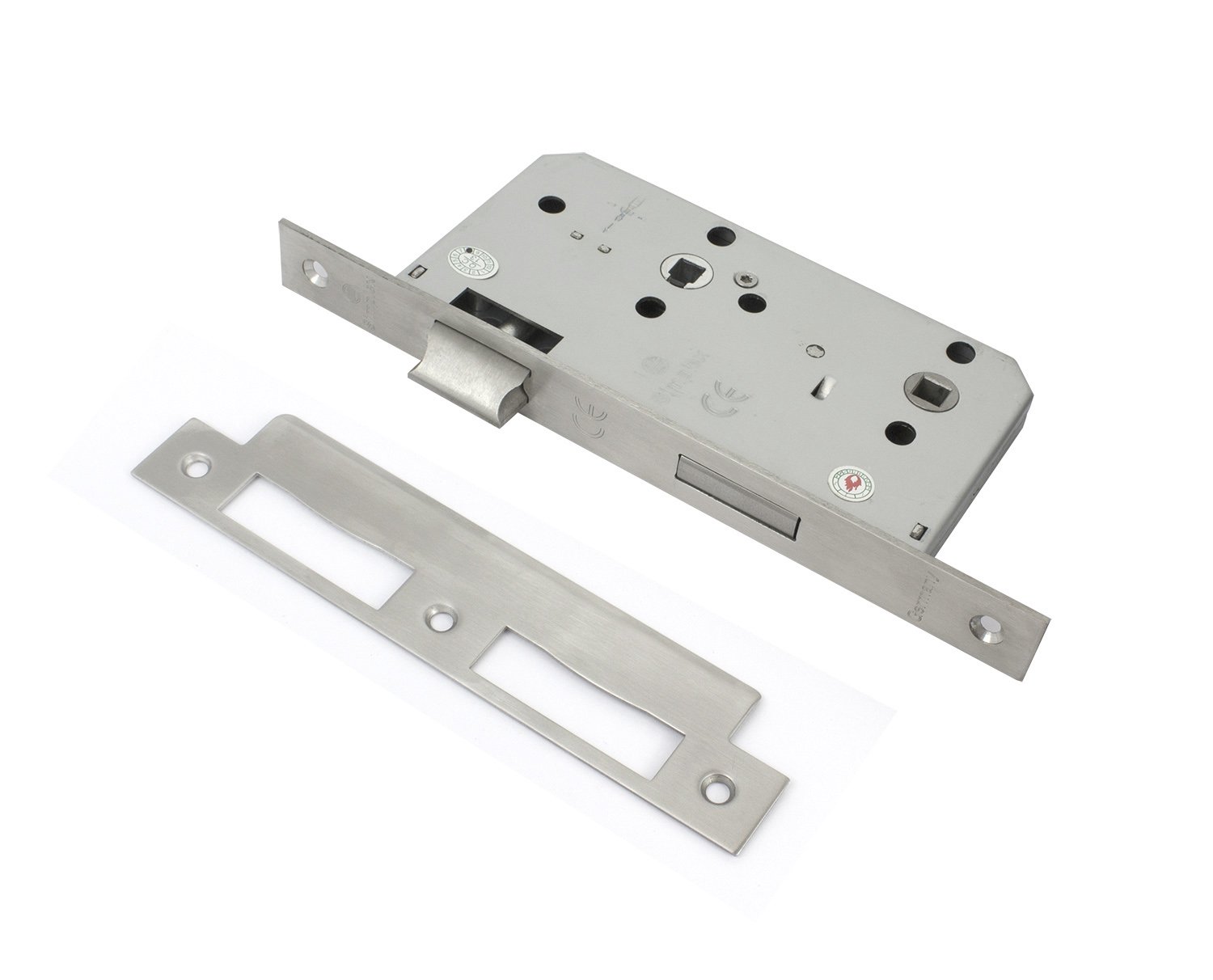 - Latchbolt, Forend and Strike Plates made of Satin Stainless Steel